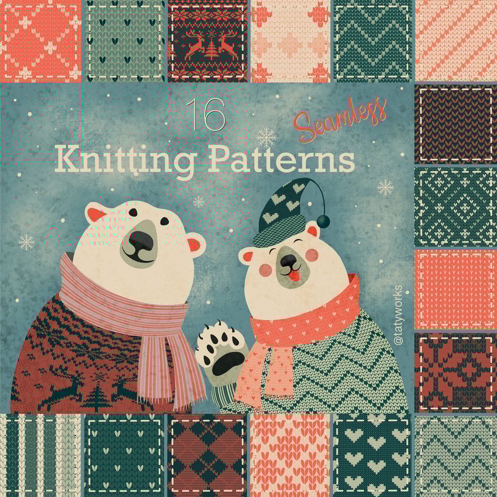 With this brush set, you'll get 16 unique warm winter knitting patterns that are all seamless pattern brushes for Procreate.