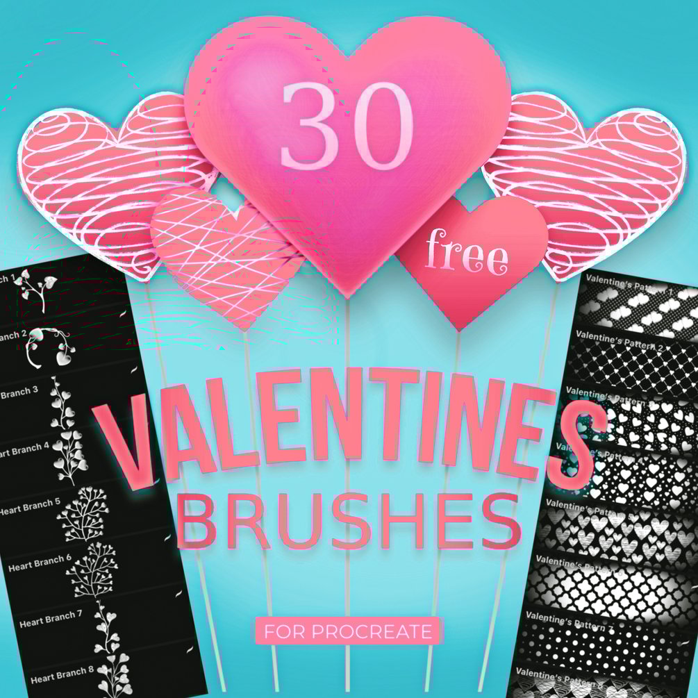 This free Procreate brush set has 30 Valentine's Day-related brushes.
