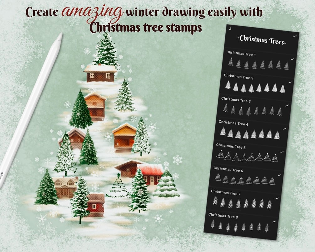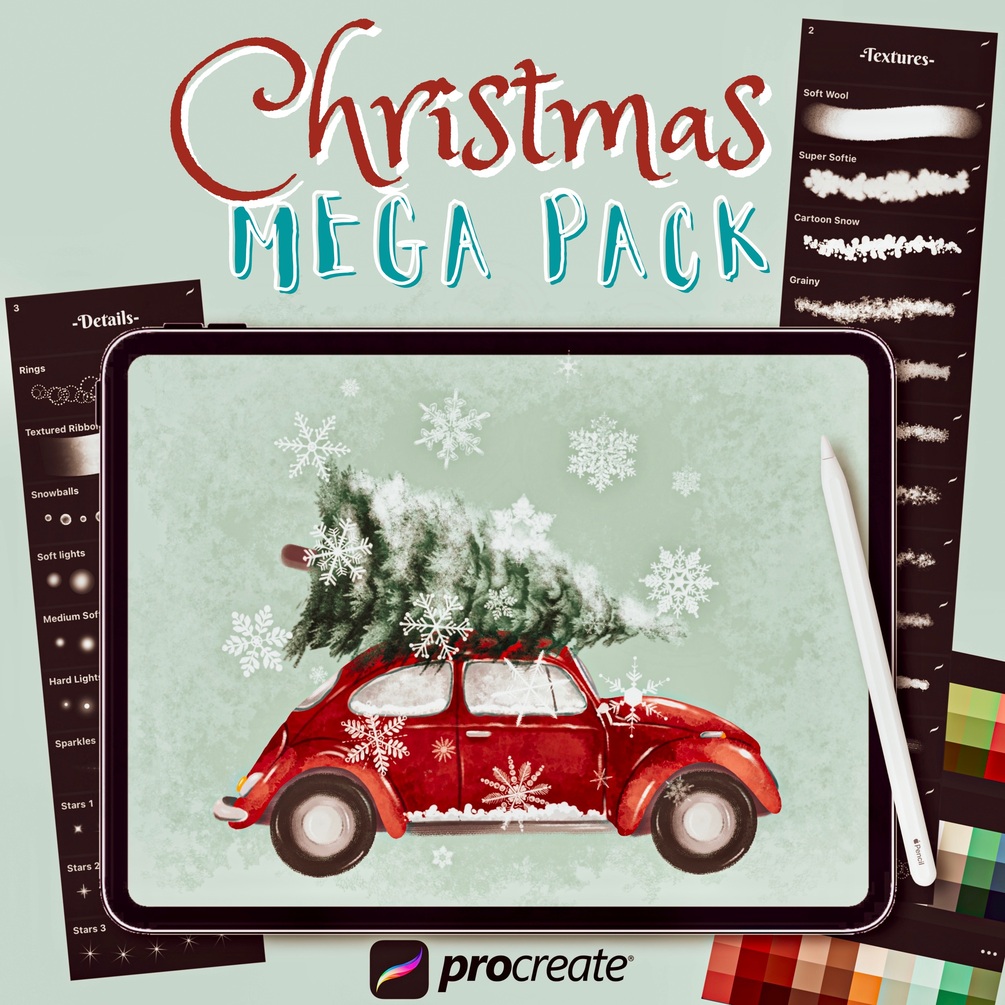 With this mega bundle, you will receive an adorable collection of high-quality holidays & winter-themed brushes, stamps, and ready-to-use frames, illustrations, background images, and color palettes