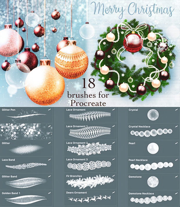 Christmas Brushset - (8 seamless patterns, 11 textures, 10 details, 10 snow brushes)