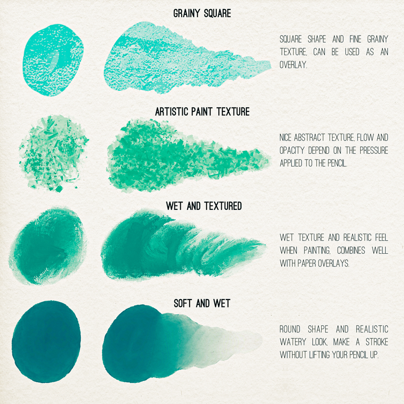 Some of the brushes are intended to create a more realistic look and then the others will give a more painterly feeling.